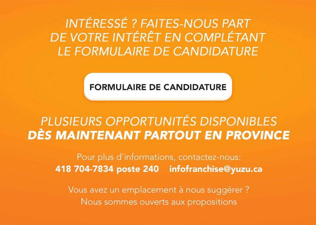 Avant de vous inscrire à l’infolettre de Yuzu, nous vous demandons de lire et d'accepter les termes de la politique de confidentialité de MTY, ici.