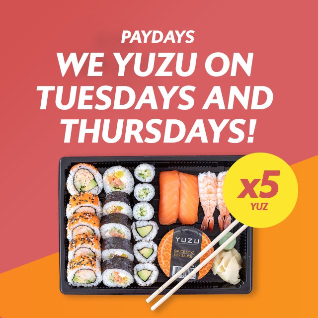 Gagnez 5 fois plus de yuz les mardis et jeudis lorsque vous commandez un nigiri, hosomaki ou maki.
